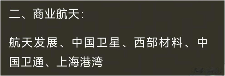商业航天这两年热度渐起。航天发展在航天防务领域的布局,跟着国防信息化的脚步走,是比较稳的方向。中国卫星在这里算是“跨界选手”,凭借卫星研制的优势,在商业航天里也能分一杯羹。西部材料的新材料,是航天领域的基础支撑,属于“幕后英雄”。中国卫通是国内通信卫星运营的独一份,这稀缺性就是它的底气。不过上海港湾和商业航天的关联度就没那么高了,大家得擦亮眼睛。商业航天目前还属于小众领域,技术壁垒高,发展周期长,投资它得有足够的耐心。